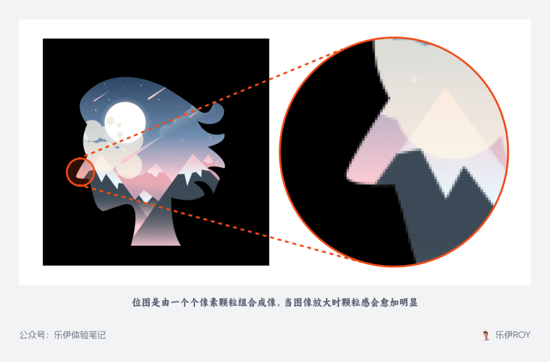 位图的专业称呼是点阵图或栅格图,它的常见格式有jpg、gif、png等。这类图像是由一个个像素点所组成的,每个像素点都是一个颜色方块,当不同方块组合在一起我们整体来看时,最终就是一张完整的图像了。下图是由矢量图栅格化转化成的位图,可以看到图像边缘有非常明显的颗粒感。