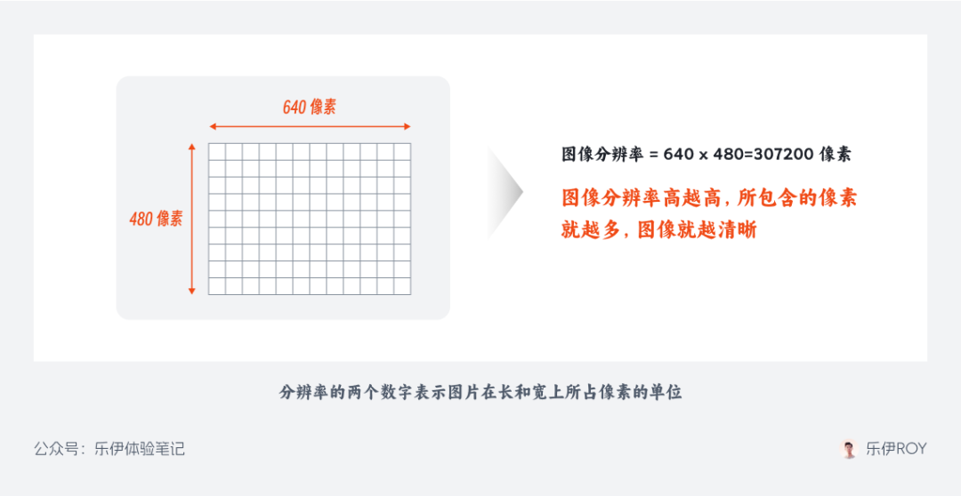 分辨率,又叫解析度、解像度,它决定了位图图像细节的精细程度。分辨率和图像的像素有直接关系,通常情况下图像的分辨率越高,所包含的像素细节就越多,图像就越清晰。分辨率的两个数字表示的是图片在长和宽上所占像素的单位,比如一张分辨率为 640 x 480 的图片,分辨率就达到了 640 x 480=307200 像素,也就是我们常说的 30 万像素。