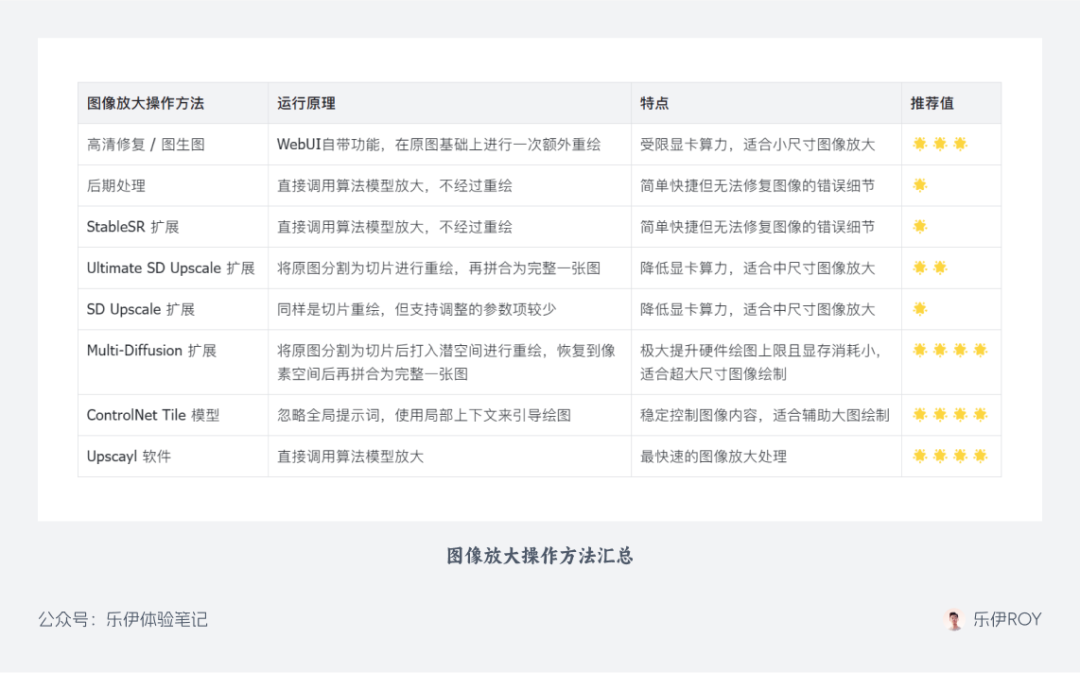 下面是针对今天分享内容整理的总结,大家可以根据自己的实际使用场景选择最佳的放大处理方式:
