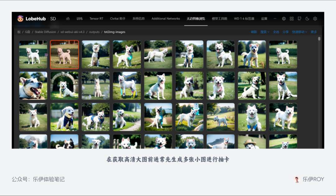 使用高清修复和图生图进行图像高清放大的优点在于操作简单直接,无需其他复杂设置即可完成。受限于显卡性能和出图效率,我们在绘图前往往都是先通过抽奖的方式多生成几张小图,然后从中选择最满意的一张使用高清修复或图生图进行高清放大。